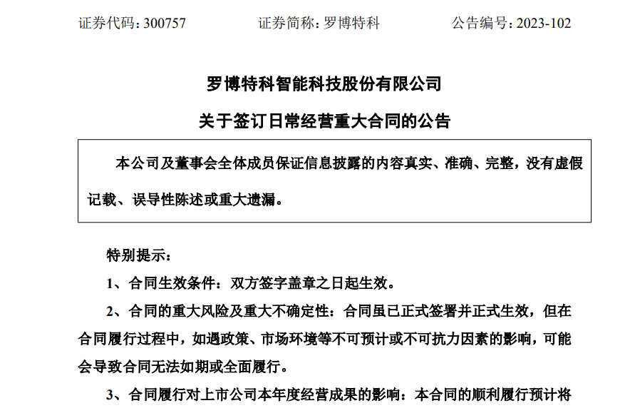 羅博特科表示,合同的簽訂預計將對公司及全資子公司南通羅博本年度及未來年度經(jīng)營業(yè)績產(chǎn)生積極影響,公司及全資子公司南通羅博將根據(jù)合同要求以及收入確認原則在相應的會計期間確認收入(最終以經(jīng)會計師事務所審計的數(shù)據(jù)為準)。