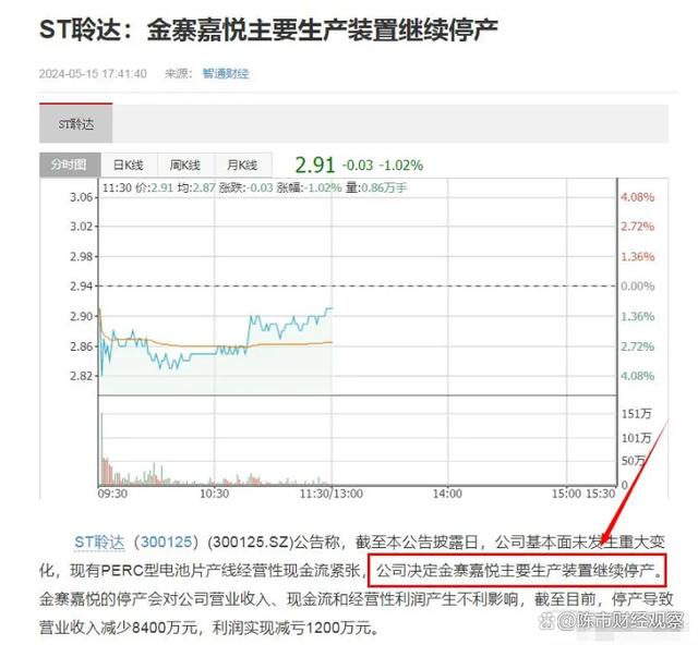 據(jù)業(yè)內(nèi)消息顯示,ST聆達(dá)股份(300125)日前發(fā)布公告,稱由于公司基本面未發(fā)生重大變化,現(xiàn)有PERC型電池片產(chǎn)線經(jīng)營性現(xiàn)金流緊張?;诖?,聆達(dá)股份宣布旗下的光伏制造工廠-金寨嘉悅繼續(xù)保持停產(chǎn)狀態(tài),但具體的復(fù)工時(shí)間并未確定。值得一提的是,今年2月份,金寨嘉悅就因?yàn)槭袌?chǎng)等因素而宣布于3月5日開始放假,并預(yù)計(jì)今年6月1日復(fù)工。然而,在預(yù)計(jì)的復(fù)工日期臨近之際,金寨嘉悅被宣布繼續(xù)停產(chǎn)。業(yè)內(nèi)人士認(rèn)為,此次宣布繼續(xù)放假,預(yù)示著這家光伏大廠正面臨前所未有的困難,短期內(nèi)復(fù)工或是無望。