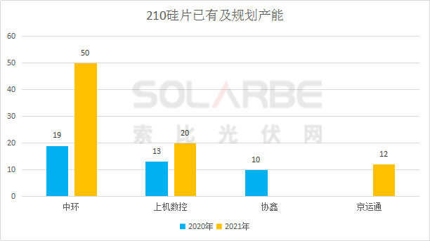 通過(guò)梳理現(xiàn)有以及規(guī)劃中的210產(chǎn)能,索比光伏網(wǎng)發(fā)現(xiàn),2020年底中環(huán)、上機(jī)數(shù)控、協(xié)鑫三家的210硅片產(chǎn)能已達(dá)42GW,2021年210硅片產(chǎn)能規(guī)劃已超92GW。由此看來(lái),2021年210大尺寸硅片迭代速度將超乎預(yù)期。
