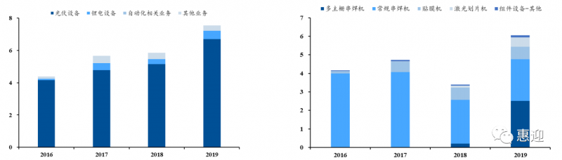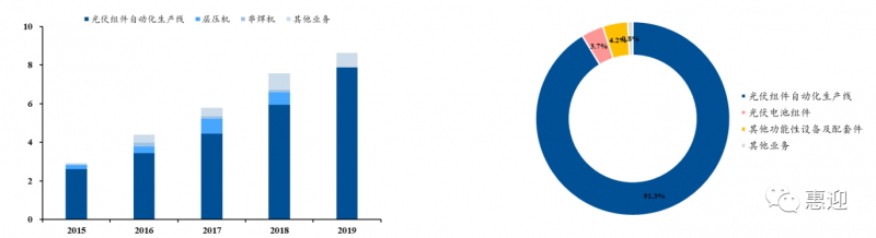 公司于 2009 年進入光伏行業(yè),致力于光伏電池和光伏組件的自動化成套設(shè)備的開發(fā)設(shè)計、生產(chǎn)和銷售,于 2013 年首創(chuàng)國產(chǎn)電池片串焊機,在 2017 年成功研發(fā)并量產(chǎn)多主柵串焊機和半片串焊機。公司光伏設(shè)備業(yè)務的政策聚焦于行業(yè)優(yōu)質(zhì)客戶,經(jīng)過多年來的積累,已經(jīng)形成較強的技術(shù)優(yōu)勢和品牌效應,設(shè)備受到隆基股份、晶科能源、中國節(jié)能等業(yè)內(nèi)一流廠商的青睞。