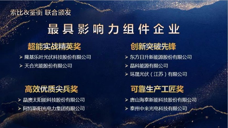 最具影響力組件企業(yè)獎項及評選依據如下: