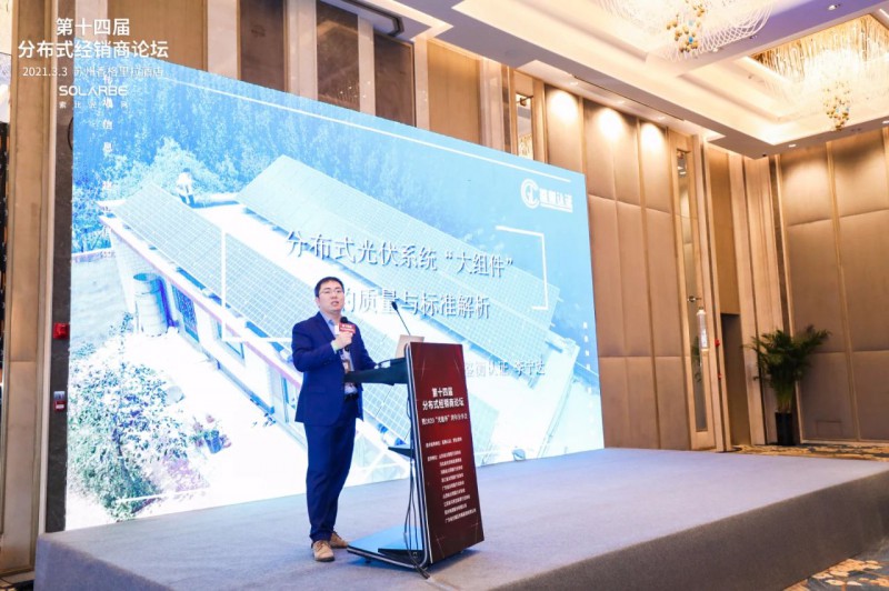 光能杯同期舉辦的第十四屆“光伏經銷商論壇”中,鑒衡太陽能事業(yè)部組件總監(jiān)李寧達帶來《分布式光伏系統(tǒng)“大組件”的質量與標準解析》演講