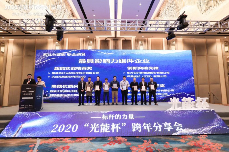 3月3日,由索比光伏網主辦的2020年度“光能杯”跨年分享會暨頒獎典禮圓滿落幕。這是2021開年的全國首個大型光伏頒獎盛宴,來自中國各大光伏品牌企業(yè)代表及各地經銷商代表齊聚一堂,400余人共同見證中國光伏行業(yè)的開年榮耀時刻。