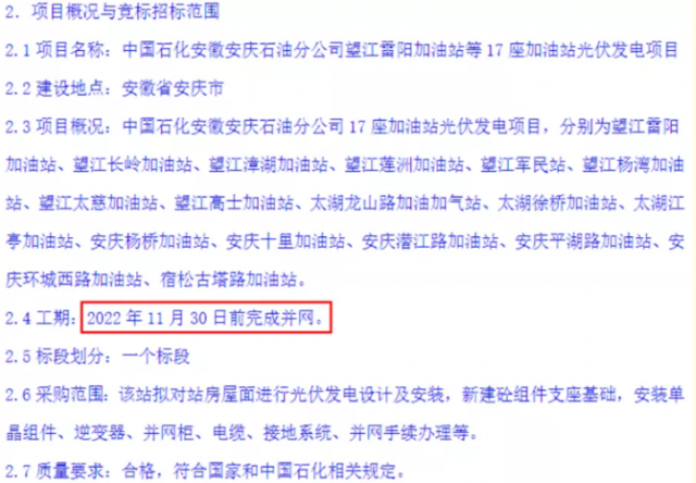 該17座加油站光伏項(xiàng)目要求在2個(gè)月內(nèi)并網(wǎng)!