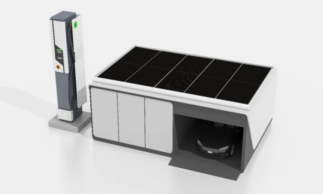 中來(lái)匈牙利墻體結(jié)構(gòu)的光伏車棚項(xiàng)目,只需要30塊組件,連接充電樁,利用棚頂?shù)墓夥M件發(fā)電,可以解決至少6輛新能源車的充電問(wèn)題。