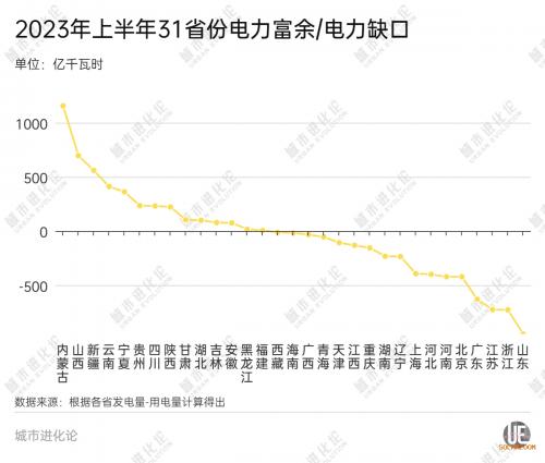 在內(nèi)蒙古之外,山西、新疆、云南上半年富余電量均在400億千瓦時以上,寧夏、貴州、四川、陜西也超過200億千瓦時,都是“西電東送”的重要力量,也是電力“缺口”大省的強大“外援”。