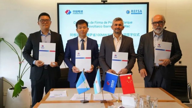 近日,在布宜諾斯艾利斯市電建阿根廷分公司辦公室,中國電建股份公司與上海電建聯(lián)合體同阿根廷福爾摩薩省資源與能源公司總裁丹尼爾·馬科斯·馬里奇和省經(jīng)濟(jì)部部長豪爾赫·奧斯卡·伊巴尼茲,共同簽署了IBARRETA 100MW光伏項目EPC合同。