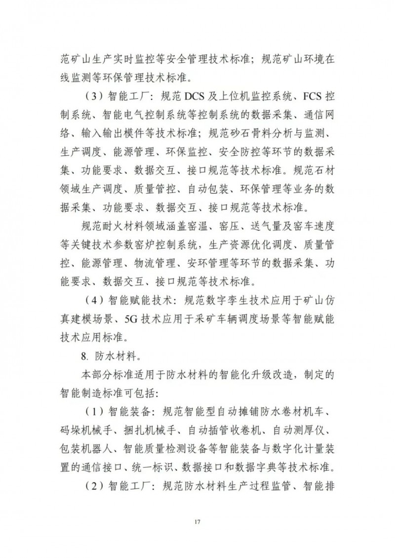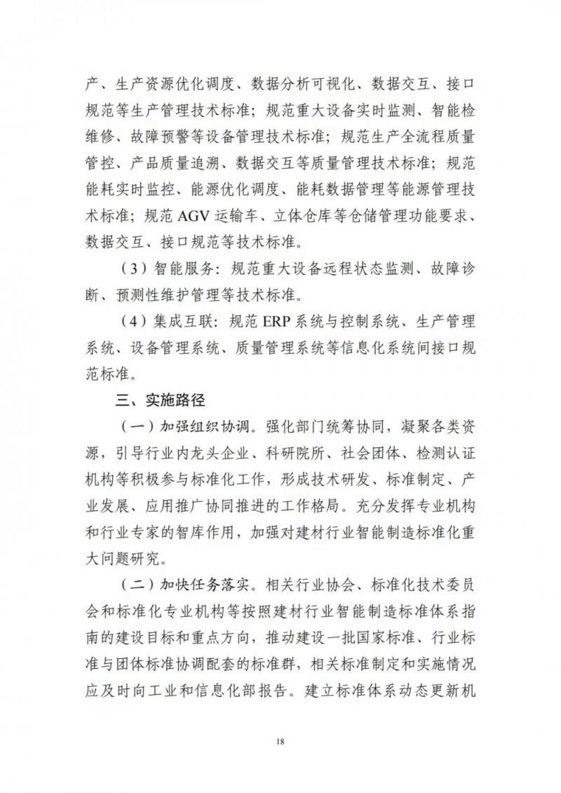 為貫徹落實(shí)《國家標(biāo)準(zhǔn)化發(fā)展綱要》,加強(qiáng)智能制造標(biāo)準(zhǔn)的統(tǒng)籌規(guī)劃,切實(shí)發(fā)揮標(biāo)準(zhǔn)對(duì)推動(dòng)建材行業(yè)智能制造發(fā)展的支撐和引領(lǐng)作用,工業(yè)和信息化部依據(jù)《建材工業(yè)智能制造數(shù)字轉(zhuǎn)型行動(dòng)計(jì)劃(2021-2023年)》和《國家智能制造標(biāo)準(zhǔn)體系建設(shè)指南(2021版)》,組織編制了《建材行業(yè)智能制造標(biāo)準(zhǔn)體系建設(shè)指南(2021版)》?,F(xiàn)印發(fā)給你們,請(qǐng)結(jié)合本行業(yè)(領(lǐng)域)、本地區(qū)實(shí)際,在標(biāo)準(zhǔn)化工作中貫徹執(zhí)行。