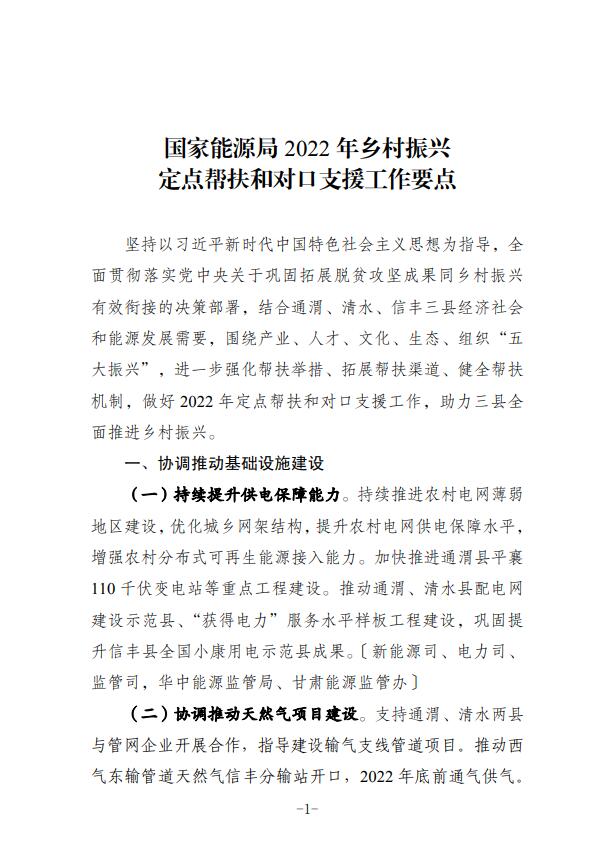 附件:國(guó)家能源局2022年鄉(xiāng)村振興定點(diǎn)幫扶和對(duì)口支援工作要點(diǎn)