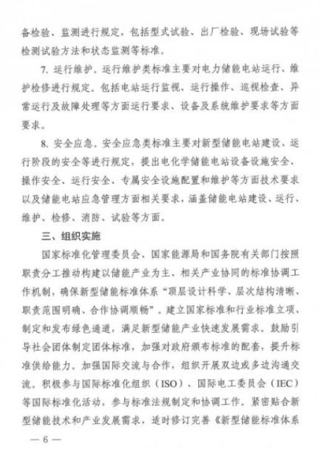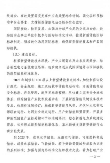 到2025年,在電化學(xué)儲(chǔ)能、壓縮空氣儲(chǔ)能、可逆燃料電池儲(chǔ)能、超級電容儲(chǔ)能、飛輪儲(chǔ)能、超導(dǎo)儲(chǔ)能等領(lǐng)域形成較為完善的系列標(biāo)準(zhǔn);加強(qiáng)與國內(nèi)外標(biāo)準(zhǔn)化組織技術(shù)交流,著力打破產(chǎn)業(yè)發(fā)展瓶頸,規(guī)范引導(dǎo)產(chǎn)業(yè)高質(zhì)量發(fā)展,保障儲(chǔ)能電站安全;加大國際標(biāo)準(zhǔn)化力度,深度參與國際電工委員會(huì)(IEC)國際標(biāo)準(zhǔn)化工作,支撐標(biāo)準(zhǔn)走出去。逐步構(gòu)建適應(yīng)技術(shù)創(chuàng)新趨勢、滿足產(chǎn)業(yè)發(fā)展需求、對標(biāo)國際先進(jìn)水平的新型儲(chǔ)能標(biāo)準(zhǔn)體系。