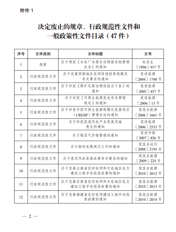 經過清理,決定對47件規(guī)章、行政規(guī)范性和一般政策性文件予以廢止,其中包括《關于完善光伏發(fā)電規(guī)模管理和實行競爭方式配置項目的指導意見》等多項跟光伏、風電能源領域有關文件。