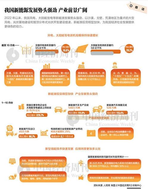 2022年以來,我國風(fēng)電、太陽能發(fā)電等新能源發(fā)展勢頭強勁,以沙漠、戈壁、荒漠地區(qū)為重點的大型風(fēng)電、光伏基地建設(shè)和屋頂分布式光伏開發(fā)建設(shè)提速,新能源投資明顯加快,為我國經(jīng)濟社會發(fā)展提供更綠色的動力。