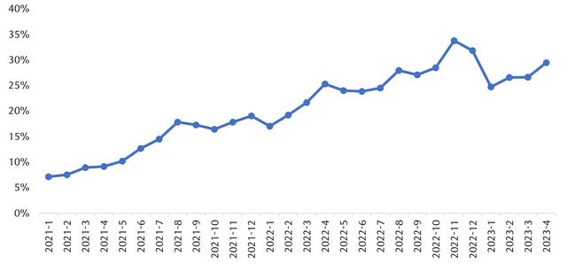 我國(guó)新能源車滲透率 資料來(lái)源:中汽協(xié)、Wind、信達(dá)證券