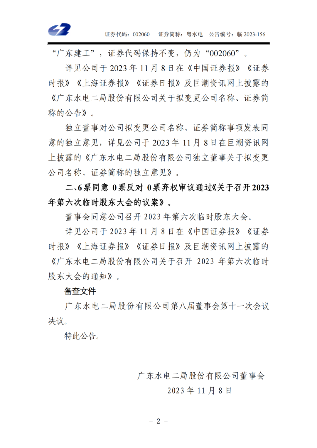 11月8日,粵水電發(fā)布公告稱(chēng),董事會(huì)同意將公司名稱(chēng)由廣東水電二局股份有限公司變更為廣東省建筑工程集團(tuán)股份有限公司。