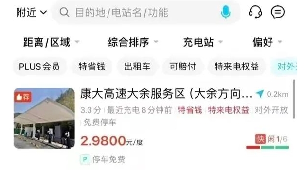 1月31日,一張“服務區(qū)充電2.98元/度”的截圖在網(wǎng)絡平臺流傳,顯示地址江西贛州康大高速大余服務區(qū)。