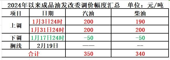 今年以來,國內(nèi)成品油零售限價已經(jīng)歷四輪調(diào)整,分別為“兩漲一跌一擱淺”。漲跌互抵后,國內(nèi)汽、柴油價格每噸較去年底分別提高350元、340元。若本輪成品油調(diào)價政策落地,將是2024年的第三次上漲,今年以來成品油調(diào)價也將呈現(xiàn)“三漲一跌一擱淺”的格局。