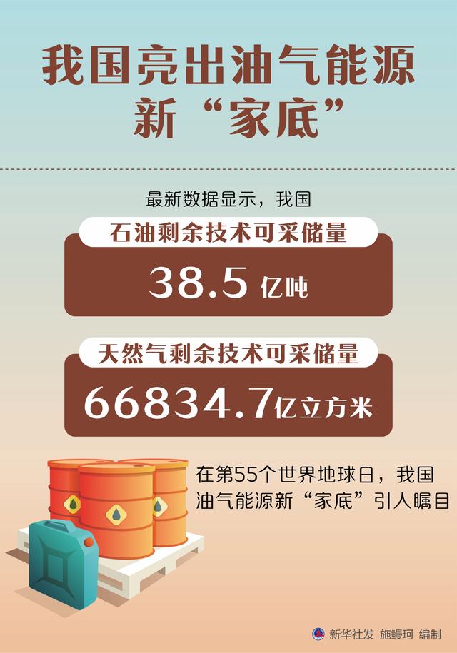 最新數(shù)據(jù)顯示,我國石油剩余技術(shù)可采儲量38.5億噸,天然氣剩余技術(shù)可采儲量66834.7億立方米。在第55個世界地球日,我國油氣能源新“家底”引人矚目。