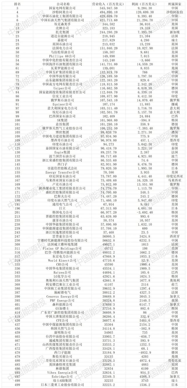 在排名前100的企業(yè)中,共有29家能源企業(yè),中國(guó)能源企業(yè)占據(jù)10家,比例超過(guò)1/3。