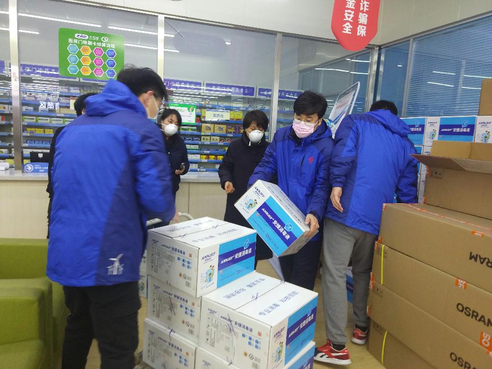 裝車、運輸、卸貨、清點數(shù)量、分批配發(fā)、臺賬登記、小車轉(zhuǎn)運……一項項工作井然有序,忙而不亂,一箱箱防控物資在志愿者的手中迅速周轉(zhuǎn)傳遞。經(jīng)過4個多小時的緊張工作,共轉(zhuǎn)運分發(fā)消毒液、消毒片、消毒濕巾、防護(hù)口罩60余箱,保證了消毒用品、個人防護(hù)用品,及時送達(dá)到街道社區(qū)疫情防控一線……