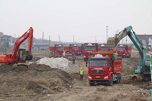2月21日,工人們戴著口罩在工地上進行作業(yè)、挖掘機忙著挖掘碎石和泥塊,渣土車來來往往清運著石料……繁忙的景象打破了多日沉寂,由中國安能第二工程局常州分公司承建的新孟河延伸拓浚工程常州新北區(qū)河道八標段正式復工。