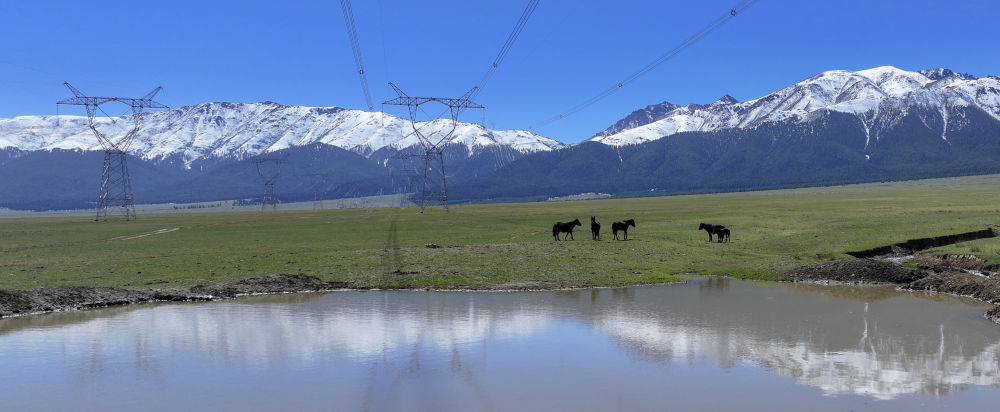 這是2024年9月10日在新疆東天山北坡拍攝的一處750千伏電力線路