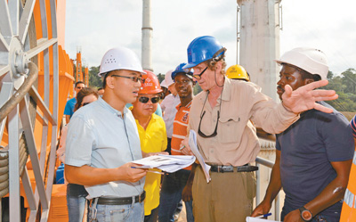 由中企承建的喀麥隆曼維萊水電站主體部分今年2月通過喀方臨時(shí)驗(yàn)收委員會(huì)驗(yàn)收。該項(xiàng)目位于喀麥隆南部大區(qū),總投資6.37億美元,總裝機(jī)容量211兆瓦。圖為監(jiān)理團(tuán)隊(duì)和喀方業(yè)主成員對(duì)水電站主體部分進(jìn)行技術(shù)驗(yàn)收。
