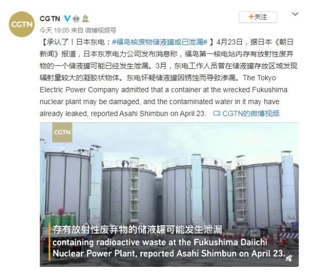4月23日,據(jù)日本《朝日新聞》報(bào)道,日本東京電力公司發(fā)布消息稱,福島第一核電站內(nèi)存有放射性廢棄物的一個(gè)儲(chǔ)液罐可能已經(jīng)發(fā)生泄漏。3月,東電工作人員曾在儲(chǔ)液罐存放區(qū)域發(fā)現(xiàn)輻射量較大的凝膠狀物體。東電懷疑儲(chǔ)液罐因銹蝕而導(dǎo)致滲漏。