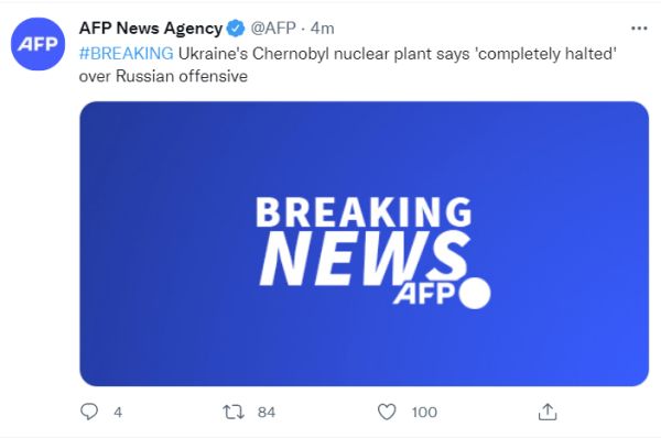 據(jù)法新社報(bào)道,烏克蘭國(guó)家能源公司(Ukrenergo)9日表示,切爾諾貝利核電站及其安全系統(tǒng)已完全斷電。