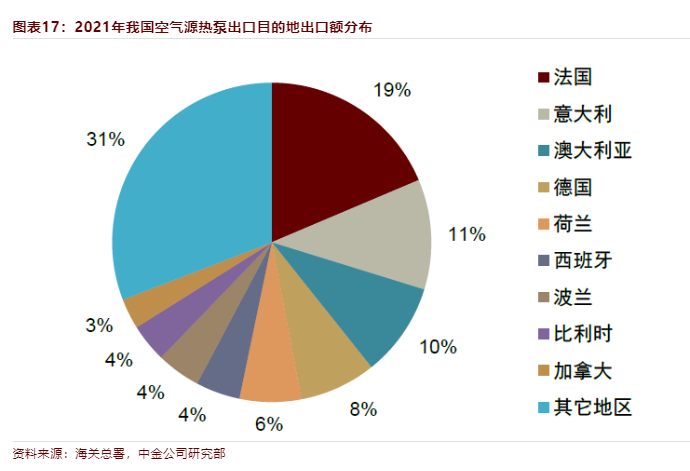根據(jù)BSRIA咨詢的測(cè)算,到2030年空氣源熱泵CAGR可能達(dá)20%左右。2021年我國出口空氣源熱泵7.93億美元,同比增長超過99.7%。