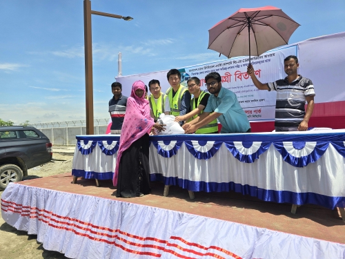 道阻且長(zhǎng),行則將至;知責(zé)于心,更要履責(zé)于行。面臨復(fù)雜的水陸河漫灘環(huán)境、沙地高樁技術(shù)難題、森林覆蓋率及雨季洪泛等難題,福建院與項(xiàng)目各方人員齊心協(xié)力,實(shí)現(xiàn)多項(xiàng)創(chuàng)新之舉。通過(guò)開(kāi)創(chuàng)性地采用“高樁合縱”方案,有效避免了河漫灘水患影響,確保光伏高樁穩(wěn)固與美觀。開(kāi)發(fā)的橇式光伏安裝工具,使得12米高空安裝光伏組件也可如履平地,刷新了孟加拉最高光伏組件樁的紀(jì)錄。在錫金水庫(kù)潰堤引起光伏區(qū)洪水沖擊期間,福建院迅速組織討論制作出施工浮船,有效解決風(fēng)浪影響和材料運(yùn)輸?shù)葐?wèn)題,大大節(jié)省施工時(shí)長(zhǎng),順利保障項(xiàng)目推進(jìn)與按時(shí)完工,以實(shí)際行動(dòng)踐行著央企的誠(chéng)信與擔(dān)當(dāng)。