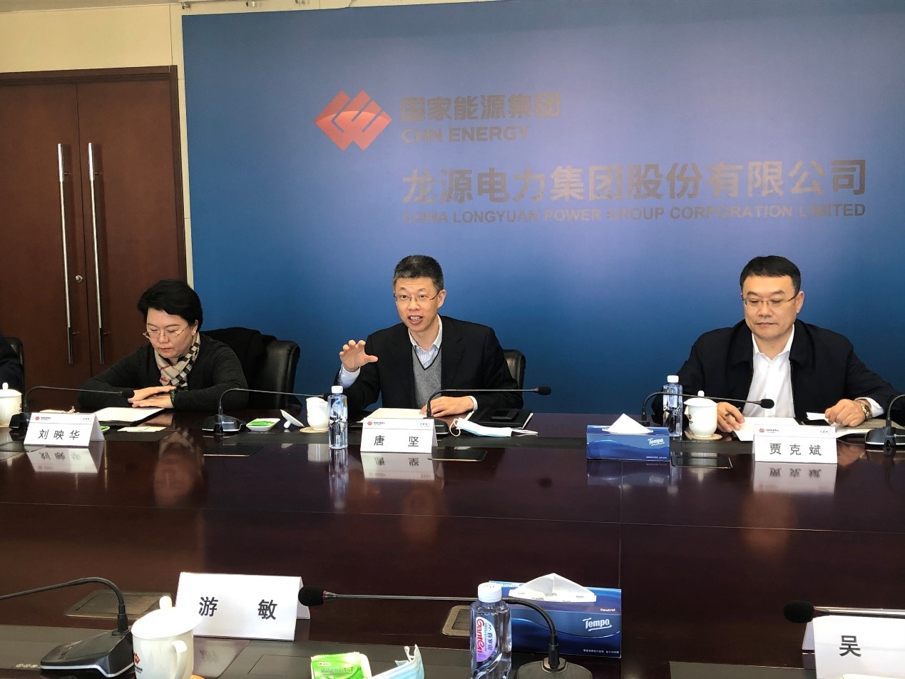 唐堅對電促會一行來訪表示熱烈歡迎。他介紹了龍源公司目前的生產(chǎn)經(jīng)營概況,近些年,龍源在數(shù)字化轉(zhuǎn)型邁出新步伐,目前已經(jīng)實現(xiàn)1.3萬臺風(fēng)機的數(shù)據(jù)信息傳輸與匯集,通過資源優(yōu)化,給公司整體的經(jīng)營帶來可觀的效益。“十四五”將在可再生能源發(fā)電數(shù)字化轉(zhuǎn)型方面加大投資力度,進一步提升負荷預(yù)測與資源優(yōu)化配置能力。目前可再生發(fā)展能源分會在風(fēng)電光伏領(lǐng)域的會員單位數(shù)量較少,今年將在會員發(fā)展方面發(fā)力,同時在政策建議、標(biāo)準(zhǔn)化、項目咨詢、會議培訓(xùn)、職稱評定等方面開展工作,依托龍源電力的行業(yè)優(yōu)勢,逐漸擴大分會在風(fēng)電生產(chǎn)運營領(lǐng)域的影響力,解決行業(yè)痛點,打造互惠互利的價值共享平臺。在碳中和“30·60”目標(biāo)指引下,依托電促會在規(guī)劃領(lǐng)域的傳統(tǒng)優(yōu)勢,推動規(guī)劃、建設(shè)、運營、項目后評估的閉環(huán)管理。作為電促會理事單位和分會秘書處掛靠單位,龍源電力一直積極參與電促會的活動,今后仍將積極支持、配合電促會各項工作。