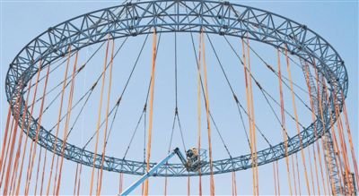 在“國和一號”示范工程某大型模塊吊裝現(xiàn)場,工人乘坐升降機檢查吊具。國家電力投資集團有限公司供圖