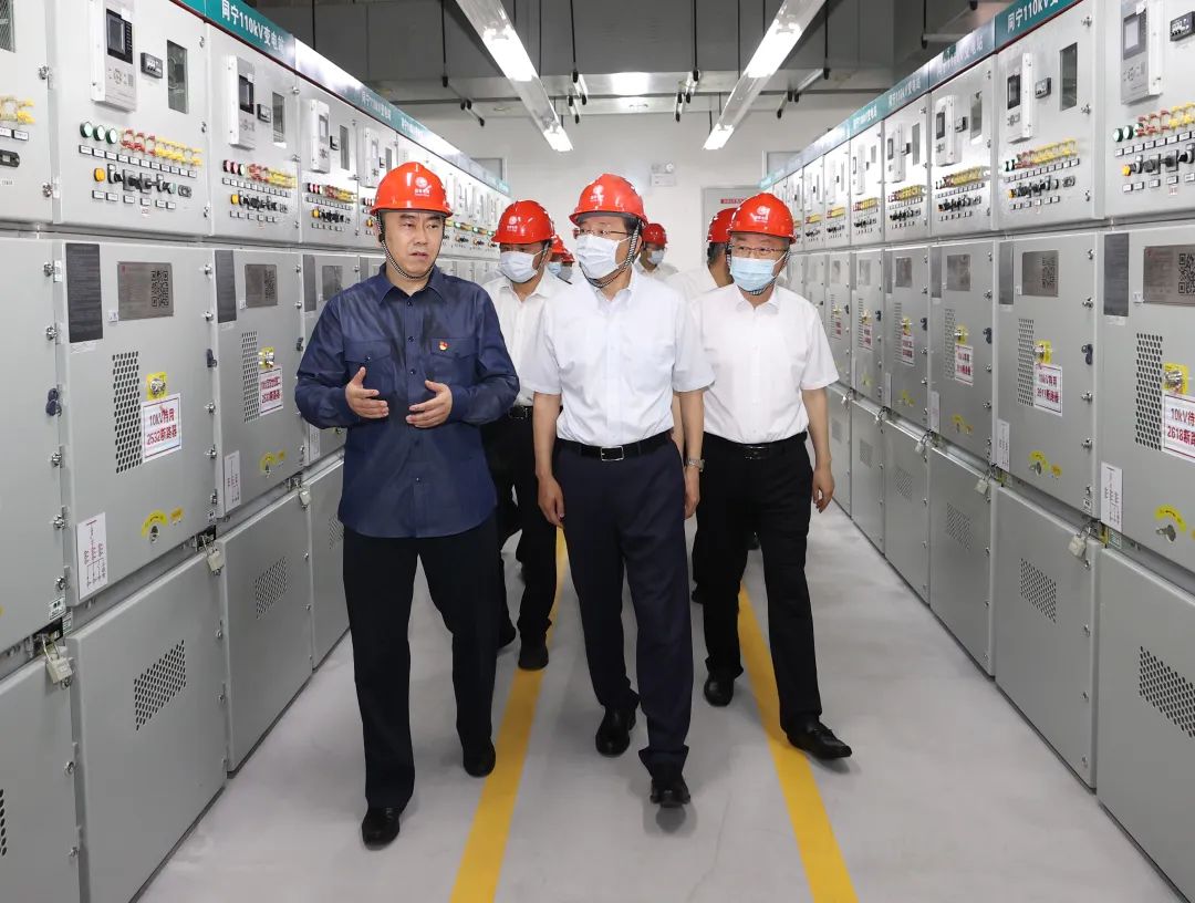 盛夏時(shí)節(jié),驕陽(yáng)似火。辛保安首先來(lái)到110千伏同寧變電站,實(shí)地查看了設(shè)備運(yùn)行情況。該站是國(guó)網(wǎng)北京電力迎峰度夏重點(diǎn)工程,于4月份投運(yùn),對(duì)滿足客戶用電需求、保障電力可靠供應(yīng)發(fā)揮了積極作用。辛保安聽(tīng)取了北京公司電力保供、重點(diǎn)工程建設(shè)情況的匯報(bào)。他指出,要堅(jiān)決扛牢電力保供首要責(zé)任,堅(jiān)持政企協(xié)同聯(lián)動(dòng)、源網(wǎng)荷儲(chǔ)發(fā)力、各方齊心合力,科學(xué)安排電網(wǎng)運(yùn)行方式,強(qiáng)化作業(yè)現(xiàn)場(chǎng)安全管控,抓實(shí)抓細(xì)疫情防控工作,著力提高應(yīng)急響應(yīng)能力,確保圓滿完成迎峰度夏各項(xiàng)任務(wù)。要堅(jiān)持高起點(diǎn)、高標(biāo)準(zhǔn)規(guī)劃建設(shè)一流城市電網(wǎng),充分發(fā)揮電網(wǎng)基礎(chǔ)支撐、投資拉動(dòng)和服務(wù)保障作用,全力推進(jìn)重大工程建設(shè),加大開(kāi)工力度、加快建設(shè)進(jìn)度,有效釋放產(chǎn)業(yè)鏈上下游市場(chǎng)需求,助力穩(wěn)經(jīng)濟(jì)穩(wěn)增長(zhǎng)。
