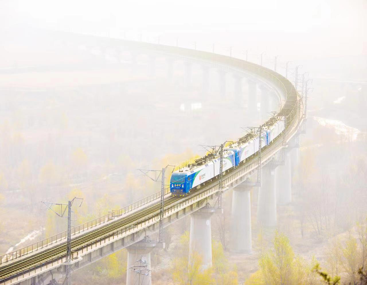 保供運(yùn)煤專列駛過(guò)神朔線燕家塔大橋。受訪者供圖