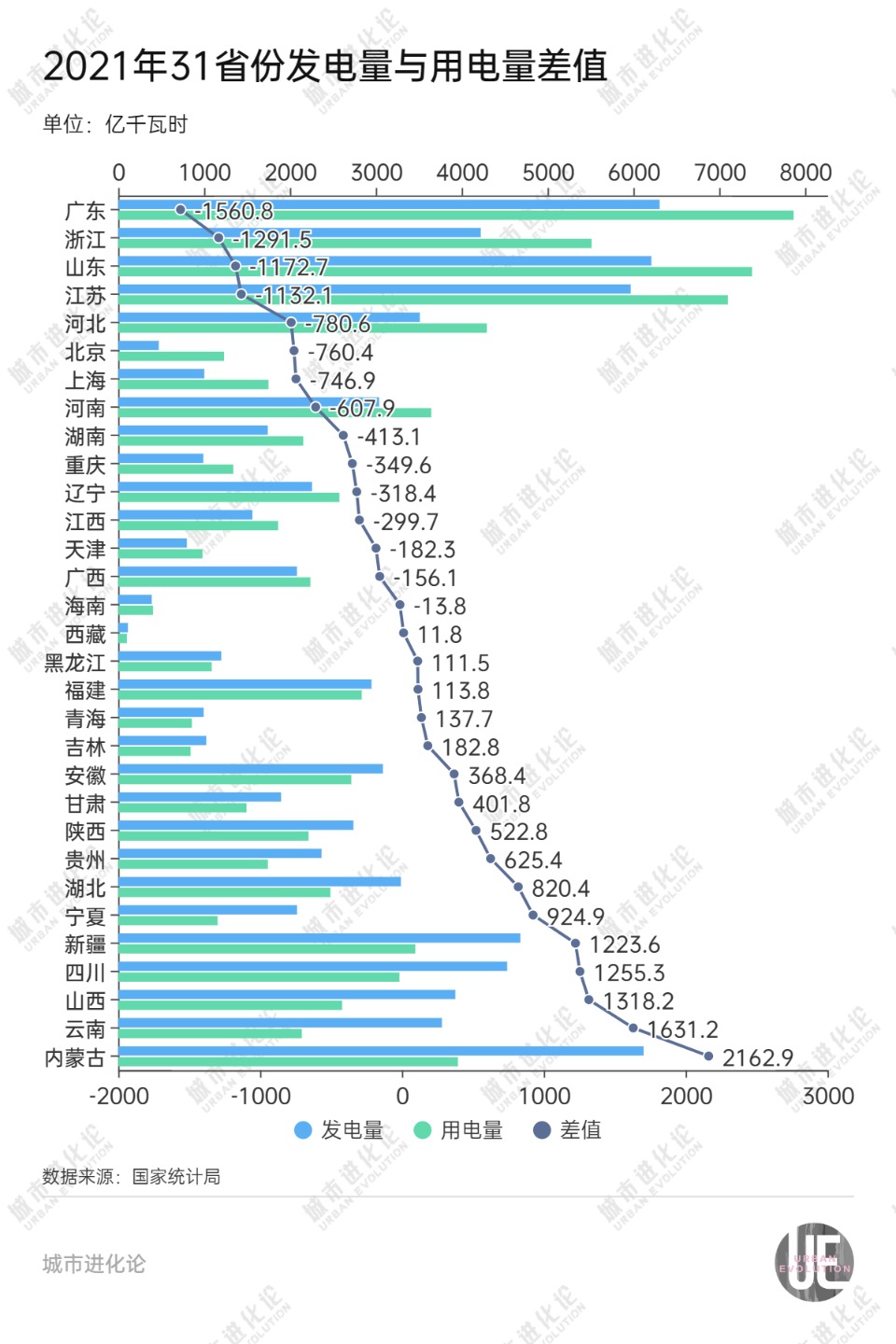 而在此前一年,廣東、浙江的凈貢獻(xiàn)均低于山東。換句話說(shuō),山東的電力缺口從2021年1172.7億千瓦時(shí)擴(kuò)大到1836.4億千瓦時(shí),增幅超過(guò)50%。相比之下,用電第一大省廣東的增幅為13%。