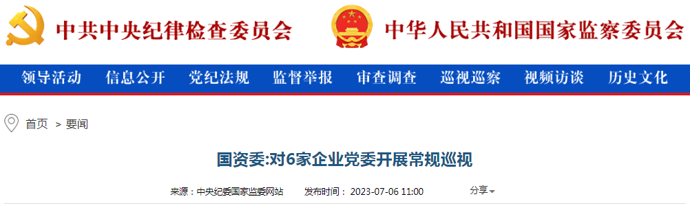 經(jīng)國資委黨委批準(zhǔn),2023年第一輪巡視對(duì)中國化學(xué)工程集團(tuán)有限公司、中國鐵路工程集團(tuán)有限公司、中國鐵道建筑集團(tuán)有限公司、中國交通建設(shè)集團(tuán)有限公司、中國電力建設(shè)集團(tuán)有限公司、中國能源建設(shè)集團(tuán)有限公司等6家企業(yè)黨委開展常規(guī)巡視。