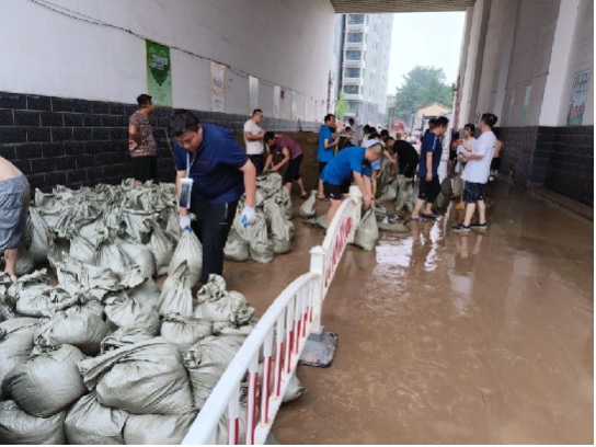 二勘局華誼物業(yè)公司黨總支搶險(xiǎn)救援突擊隊(duì)為在京涿各住宅項(xiàng)目部關(guān)鍵部位配備防汛沙袋700余個(gè),最大限度降低洪災(zāi)造成的危害;冒雨為北京?;奂卧沸^(qū)抽排積水、搶修自來(lái)水供水管道。