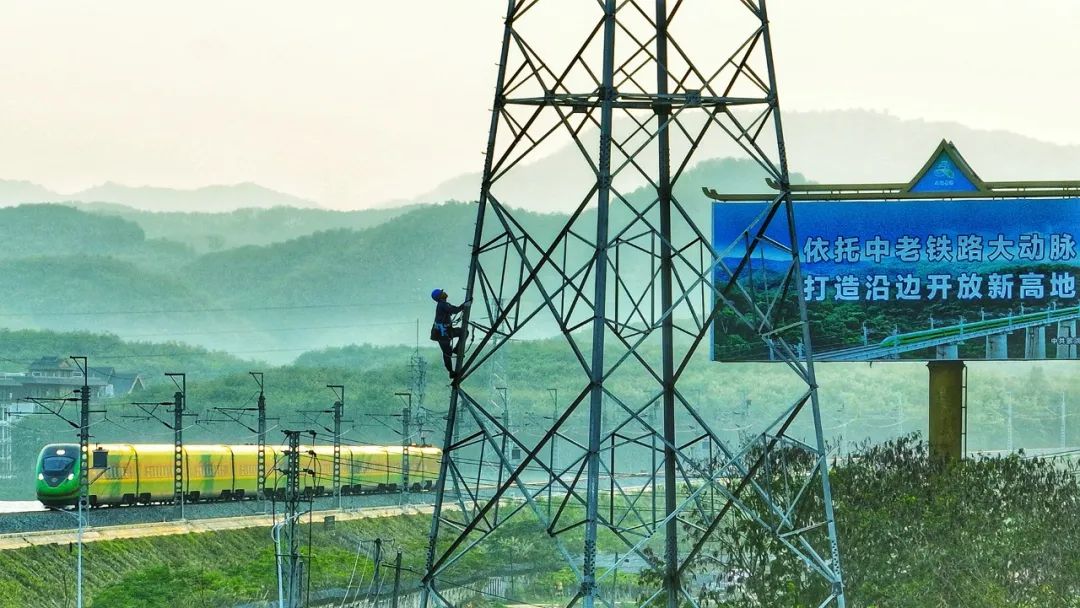 南方電網工作人員對中老鐵路沿線線路進行運維。(李志杰)