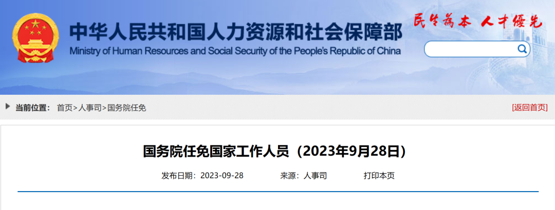 人社部網(wǎng)站9月28日消息,國務(wù)院任免國家工作人員。