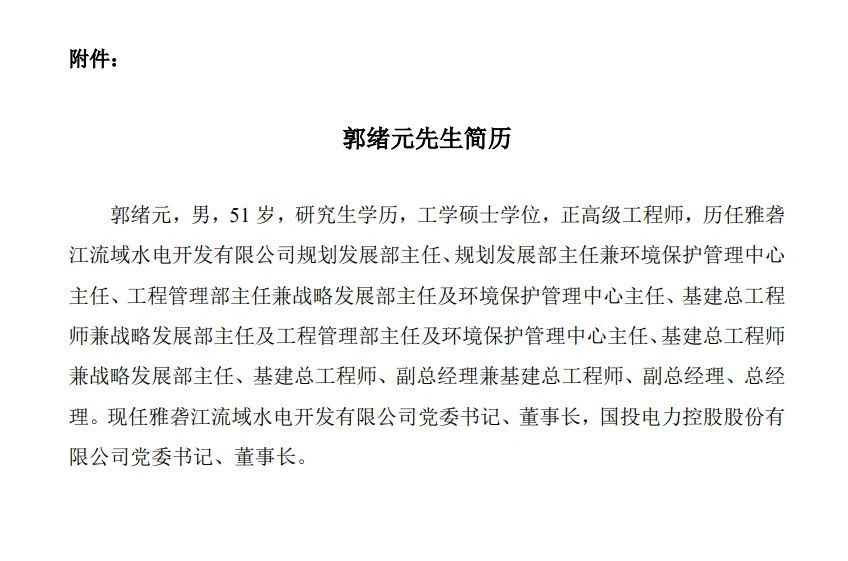 郭緒元任國(guó)投電力控股股份有限公司(以下簡(jiǎn)稱“國(guó)投電力”)董事長(zhǎng)。