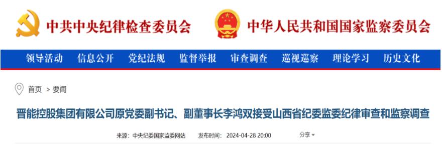 中央紀(jì)委國(guó)家監(jiān)委網(wǎng)站4月28日消息,據(jù)山西省紀(jì)委監(jiān)委消息:晉能控股集團(tuán)有限公司原黨委副書記、副董事長(zhǎng)李鴻雙涉嫌嚴(yán)重違紀(jì)違法,目前正接受山西省紀(jì)委監(jiān)委紀(jì)律審查和監(jiān)察調(diào)查。