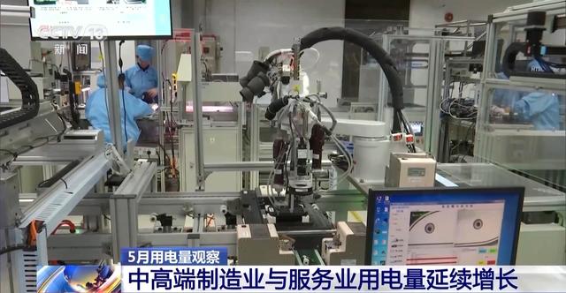 從各地亮眼的用電量數(shù)據(jù)中,記者還發(fā)現(xiàn),今年我國在中高端制造業(yè)與服務業(yè)的用電量都有顯著的增長,5月份,高技術及裝備制造業(yè)、服務業(yè)用電量增長均高于全社會用電量。