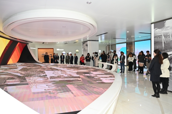 會前,記者團一行饒有興致地參觀了中國電建國際業(yè)務(wù)展示中心,并紛紛在展項前合影留念。