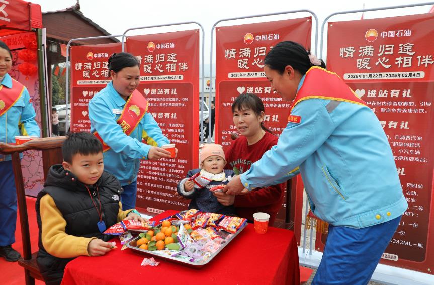 寒冬暖心,“愛”在路上。春運期間,廣西銷售成立公益活動專班,安排桂林、貴港等地的29座加油站加入今年的春運行動,協(xié)同當(dāng)?shù)卣?、工會、交管等部門聯(lián)動服務(wù),為進(jìn)站返鄉(xiāng)客戶提供免費姜湯熱茶、煮湯圓、道路指引、應(yīng)急藥箱、進(jìn)站休息等多項暖心服務(wù),溫暖八桂大地返鄉(xiāng)人。