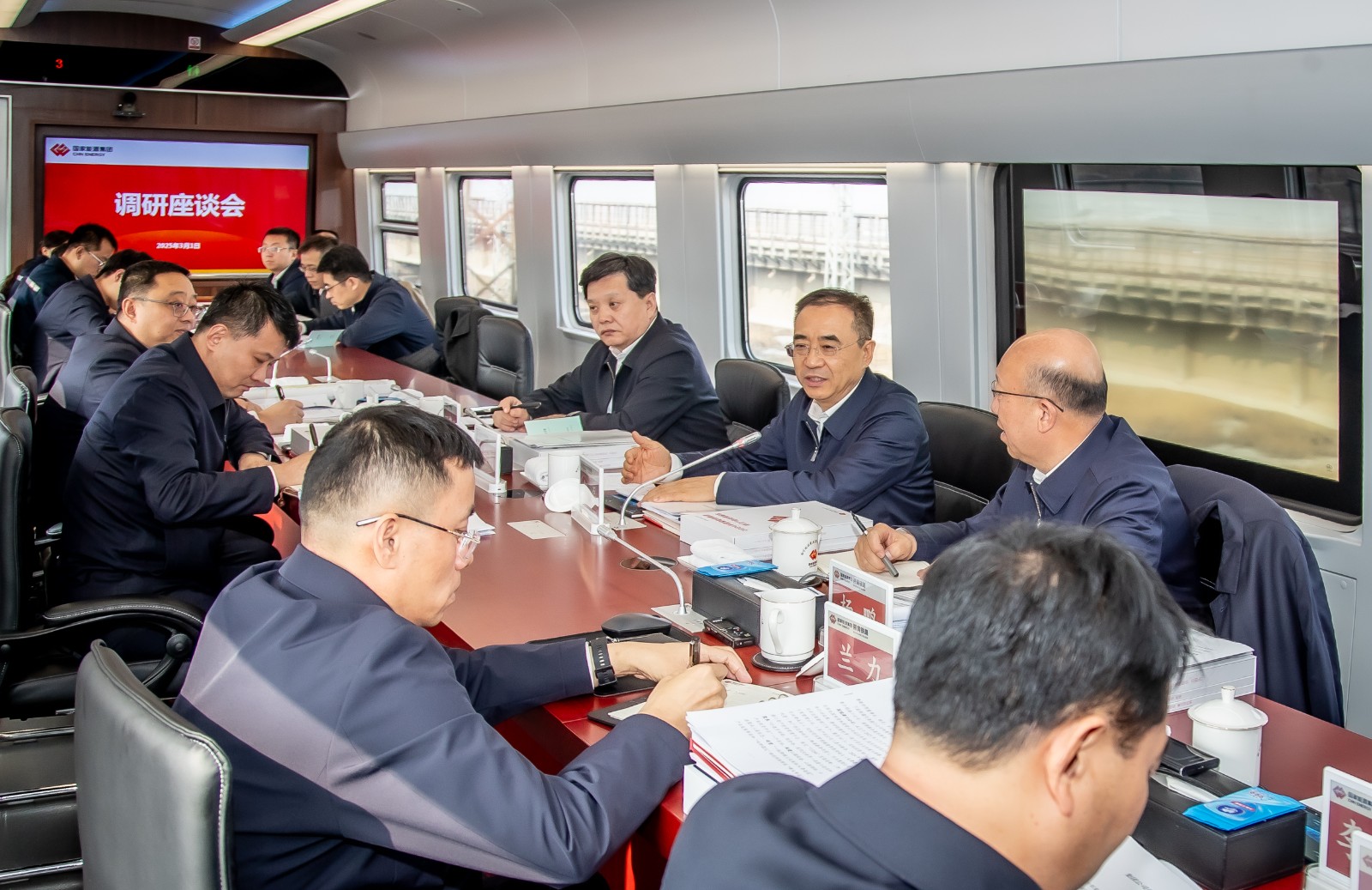調(diào)研期間,鄒磊一行乘坐智能重載綜合檢測車,沿途察看朔黃鐵路運(yùn)營相關(guān)情況,實(shí)地調(diào)研了黃驊港生產(chǎn)管控中心、翻車機(jī)房、生產(chǎn)三部等區(qū)域,聽取了朔黃鐵路、港口公司(黃驊港務(wù))工作匯報(bào),深入了解鐵路運(yùn)營、港口規(guī)劃、科技創(chuàng)新、數(shù)智化轉(zhuǎn)型等情況,并親切慰問一線干部員工。