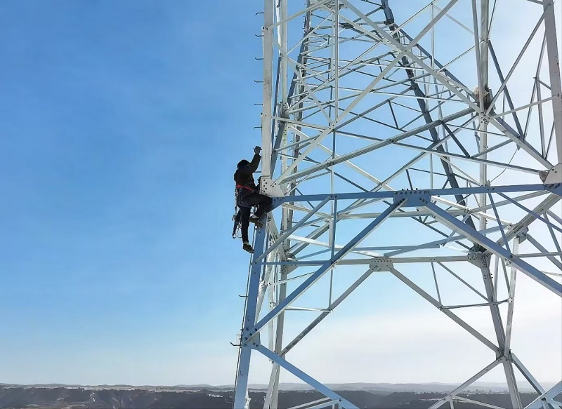國(guó)網(wǎng)陜西電力員工在陜北至關(guān)中750千伏第三通道輸變電工程(洛川段)開展鐵塔施工作業(yè)
