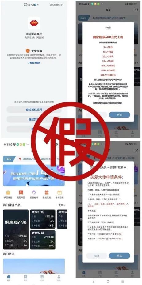 8月29日,國(guó)家能源集團(tuán)發(fā)布公告稱(chēng),近期,有不法分子假冒“國(guó)家能源集團(tuán)”名義發(fā)布手機(jī)應(yīng)用程序,建立虛假“國(guó)家能源官方微信群”,并提供虛假的“神東礦區(qū)”“朔黃鐵路”等所謂“投資產(chǎn)品”。