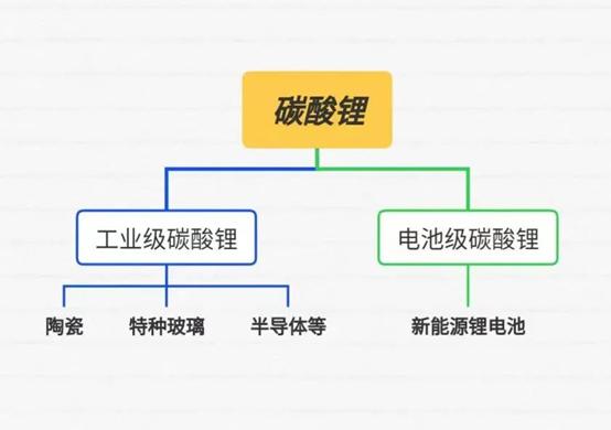 同時(shí)按照鋰含量不同可分為工業(yè)級(jí)碳酸鋰和電池級(jí)碳酸鋰。工業(yè)級(jí)碳酸鋰的鋰含量在98%—99%之間,電池級(jí)碳酸鋰的鋰含量大于等于99.5%。工業(yè)級(jí)碳酸鋰一般應(yīng)用于傳統(tǒng)化工行業(yè),其對(duì)純度要求較低,顆粒度也較大,一般在10-100微米之間。電池級(jí)碳酸鋰一般應(yīng)用于制作新能源電池,所以對(duì)其純度要求較高,顆粒度較小,一般在1-5微米之間,因電池內(nèi)部的化學(xué)反應(yīng)需要高純度碳酸鋰,顆粒度越小,電池性能越好。