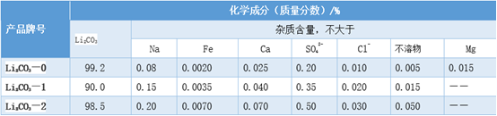 按照國(guó)標(biāo)GB/T 11075-2013分類可根據(jù)碳酸鋰含量不同分為L(zhǎng)i2CO3—0,Li2CO3—1,Li2CO3—2。