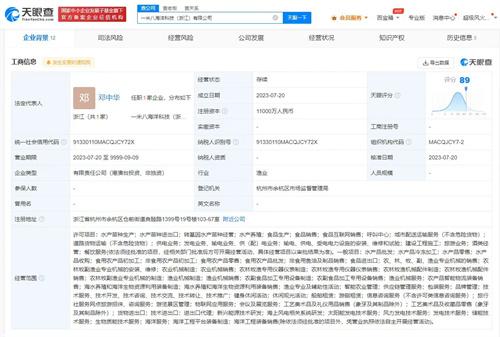 天眼查App顯示,一米八海洋科技(浙江)有限公司的法定代表人為鄧中華,注冊資本1.1億人民幣,經(jīng)營范圍包括水產養(yǎng)殖、食品銷售、水產品冷凍加工、輸電供電、海上風電相關系統(tǒng)研發(fā)、儲能技術服務等。